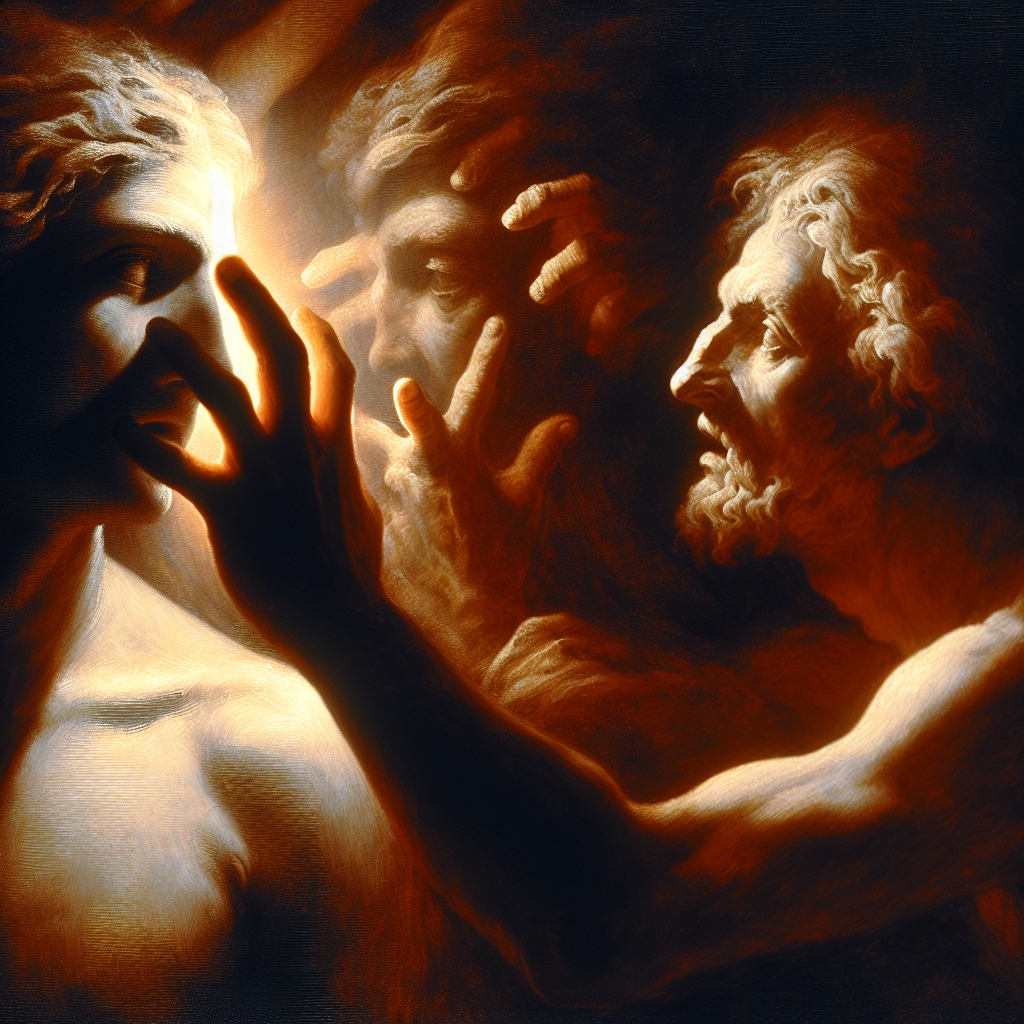 This artwork is created in the Baroque style, showcasing a man holding a cell with influences from Baroque art techniques.