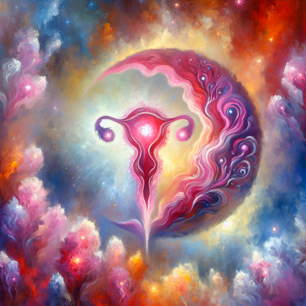 This artwork is created in the Women’s Art Movement style, showcasing a painting of a pink and purple swirl with influences from Women’s Art Movement art techniques.