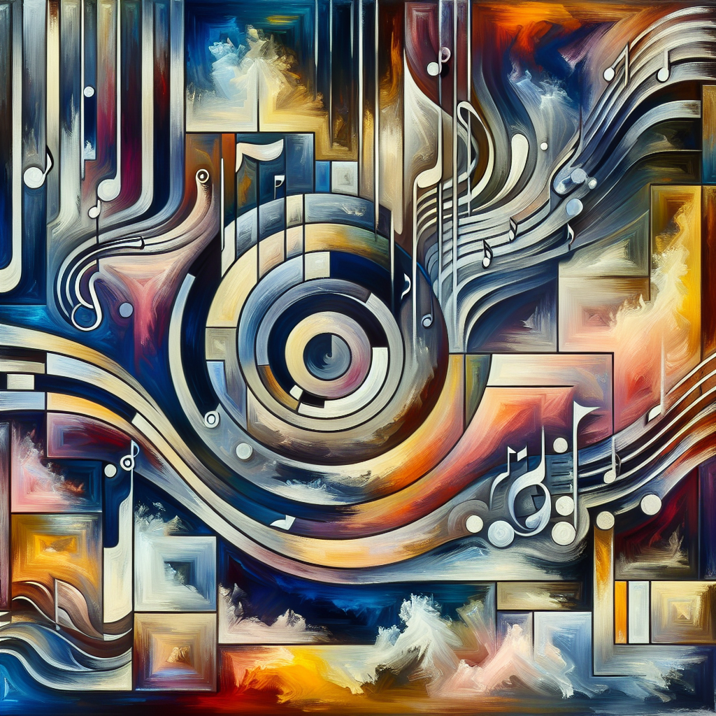 This artwork is created in the Abstract art style, showcasing abstract music background with musical notes and notes with influences from Abstract art art techniques.