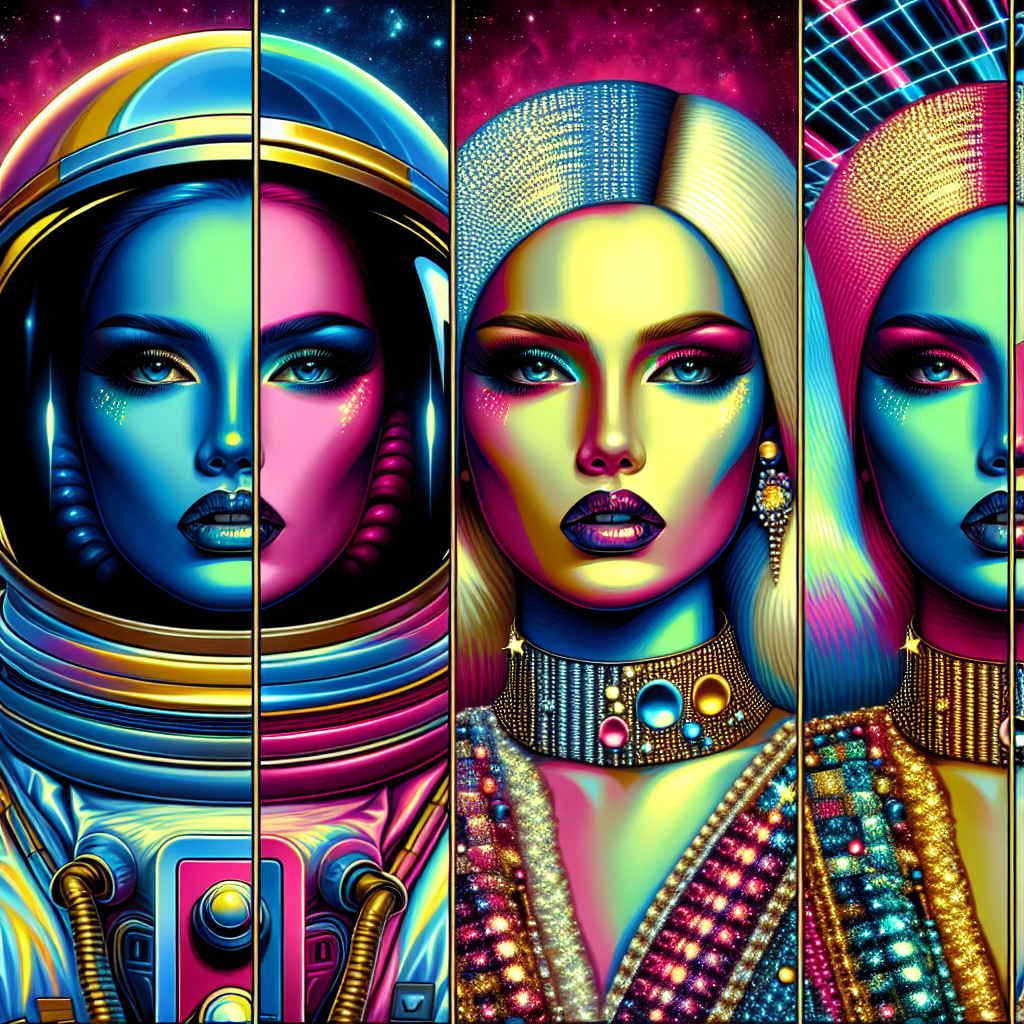 This artwork is created in the Pop art style, showcasing the four women in space with influences from Pop art art techniques.
